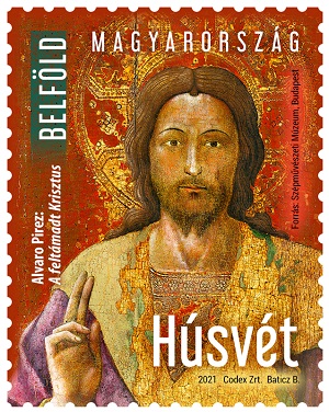 A Magyar Posta forgalmi bélyeg kibocsátásával köszönti a kereszténység legnagyobb ünnepét, a húsvétot. Az értékjelzés nélküli, Belföld felirattal ellátott, öntapadós bélyegen és a hozzátartozó borítékon az idén Alvaro Pirez: A feltámadt Krisztus című festményének részlete látható. A bélyeg Baticz Barnabás grafikusművész tervei alapján, a Codex Értékpapírnyomda Zrt.-ben készült. Megvásárolható a Filapostán, a filatéliai szakszolgálatokon, egyes postahelyeken és www.posta.hu-n.
