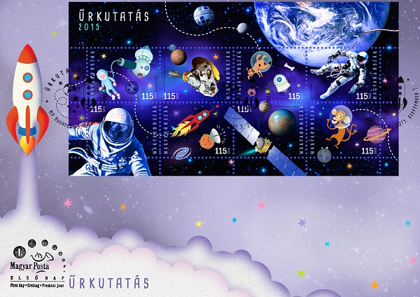 A Magyar Posta alkalmi bélyegkisívet bocsát ki aktuális űrkutatási évfordulók és események bélyegképen történő megörökítése céljával. A bélyegkisív az ifjúsági tematika keretén belül jelenik meg, ezért grafikai kialakításában keveredik a valóság és a fikció, illetve a fotó és gyermekrajzszerű ábrázolásmód. A nyolc darab 115 Ft névértékű bélyeget tartalmazó kisív Nagy Péter és Nagy Zita grafikusművészek terve alapján az ANY Biztonsági Nyomda Nyrt-ben ofszet és UV-eljárás kombinációjával készült.